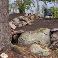 I mellanrummet mellan bostad och kontor finns numera en gång upp på berget. Saltsjö-Duvnäs.